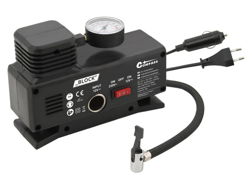 Vzduchový kompresor s vysokou účiností a napájením 12V / 230V.