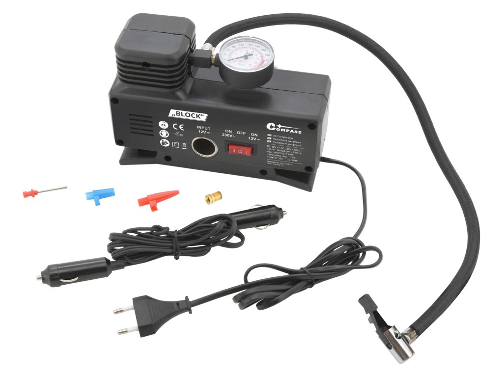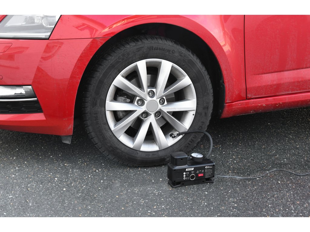 Kompresor je vhodný k huštění pneumatik osobních automobilů, motocyklů, či jízdních kol. Součástí balení jsou přídavné adaptéry pro různé použití (huštění míčů, matrací, bazénů a pod.).