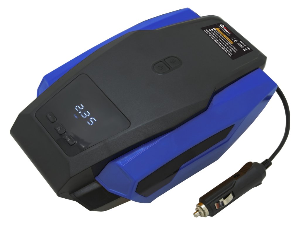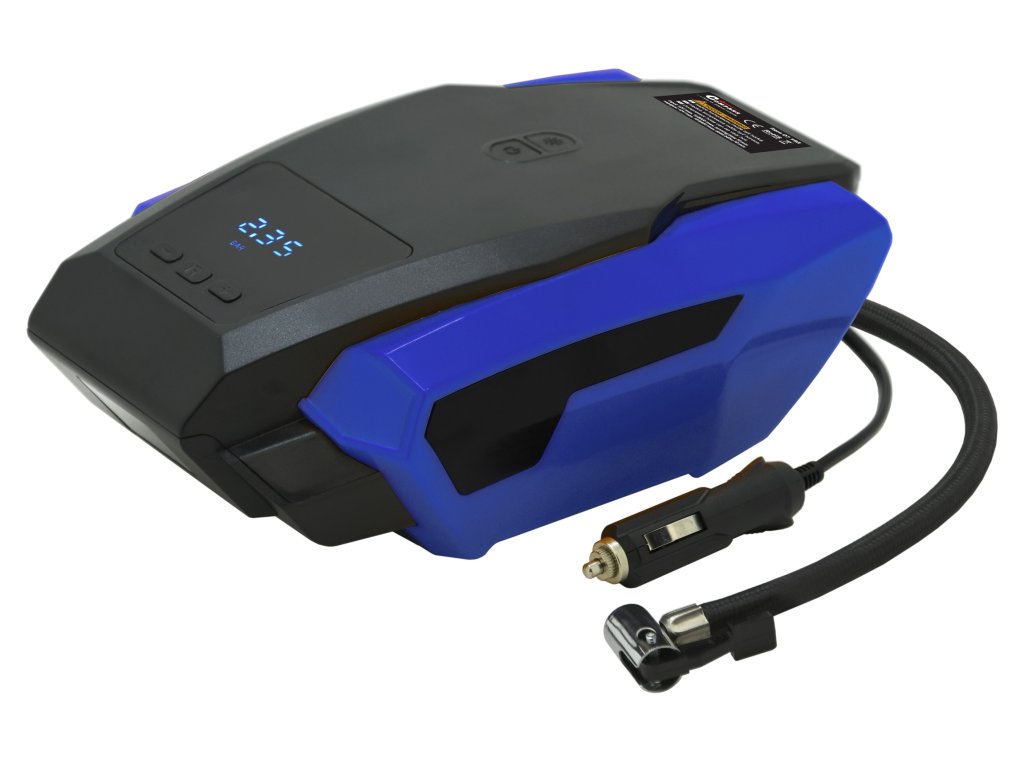 Vysoce výkonný kompresor s Auto-stop systémem a napájením z 12V zástrčky zapalovače vozidla.