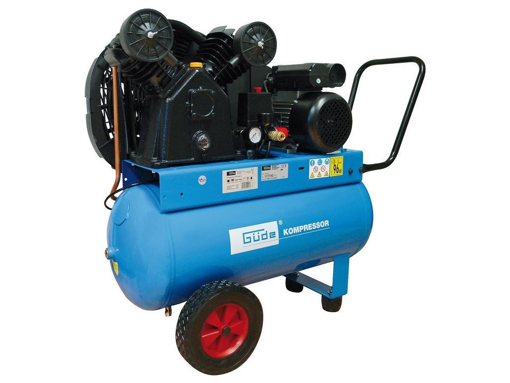 Kompresor střední výkonové třídy, elektromotor 2,2 kW, dvouválcový „V“ agregát, řemenový pohon, olejové mazání, 50 l tlaková nádoba (10 let garance), řemenice s lopatkami pro optimální chlazení agregátu, velký kryt jako garance bezpečné práce se strojem.