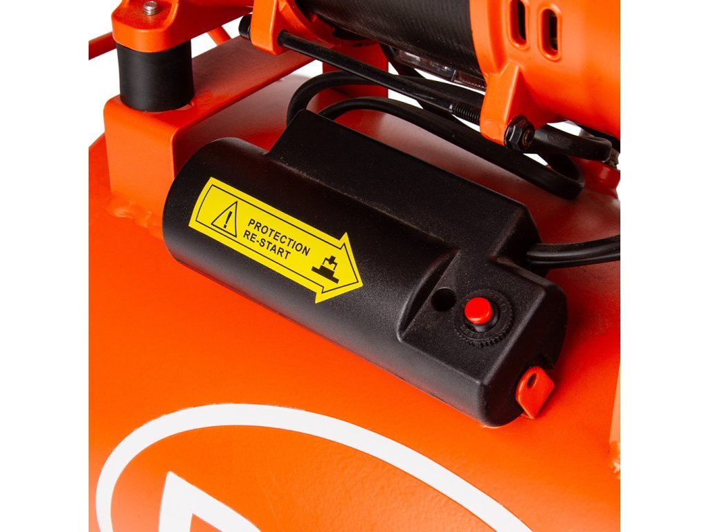 Součástí je tepelná ochrana motoru s manuálním restartem (Protection – re-start), která chrání elektromotory před poškozením v případě přetížení nebo přehřátí. Při aktivaci ochrany dojde k automatickému odpojení napájení, po vychladnutí a odstranění příčiny lze provoz obnovit jednoduchým stiskem červeného resetovacího tlačítka.