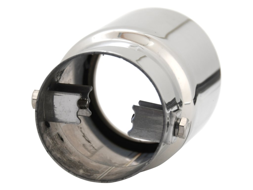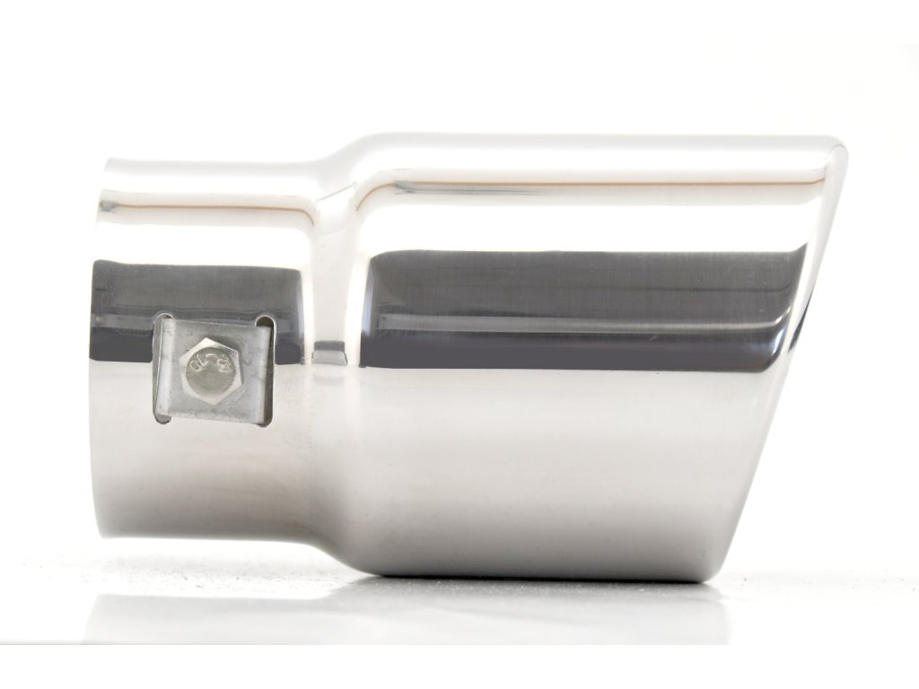 Univerzální kovová koncovka výfuku se zkoseným designem.