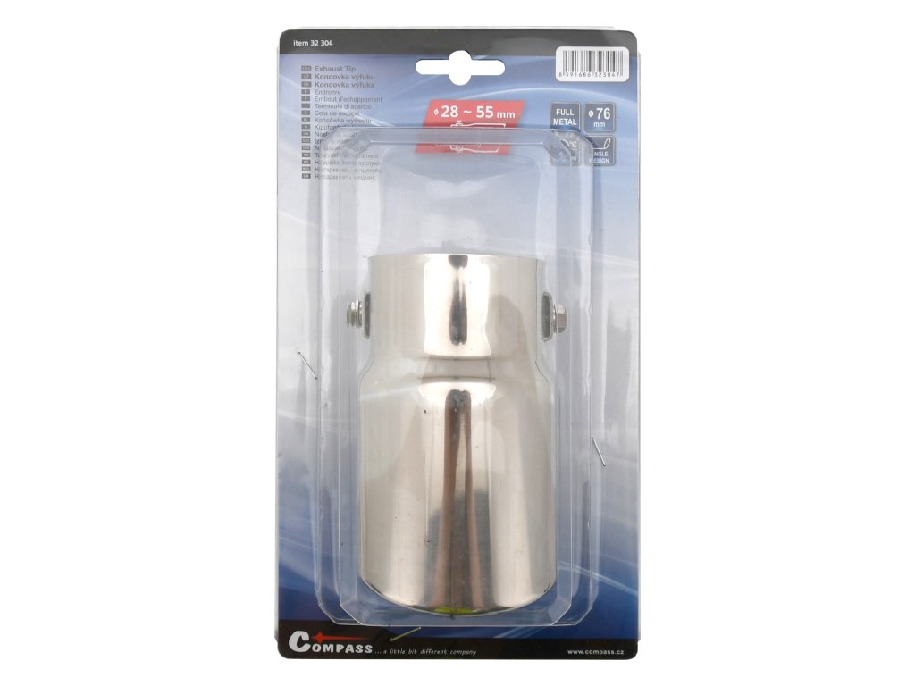 Zhotovení z odolného kovu s chromovaným povrchem. Délka koncovky 12 cm s průměrem 76 mm.