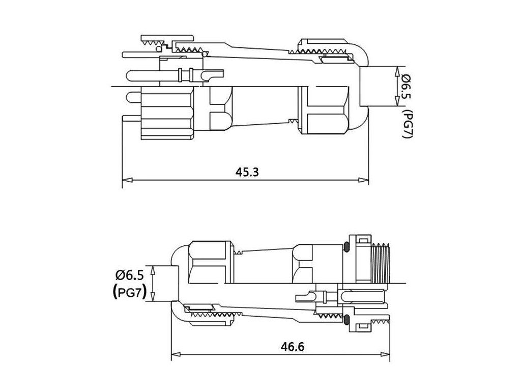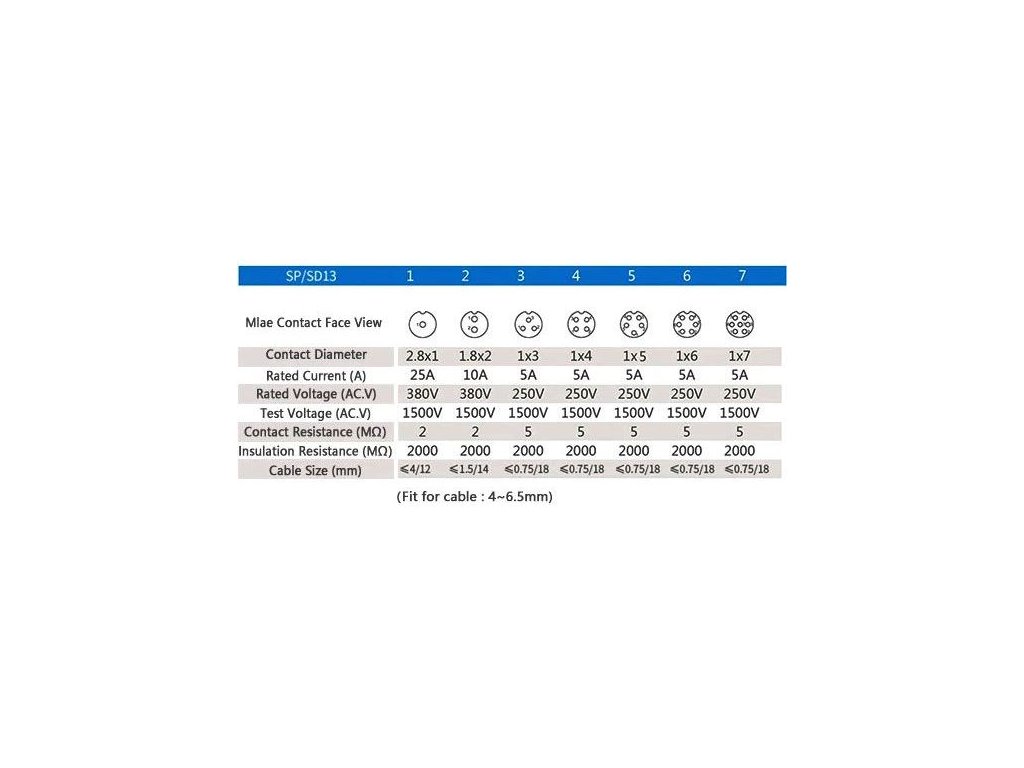 Konektor a zdířka SP/SD13-7P vodotěsný na kabel s převlečnou maticí, 250VAC, 5A AC/DC, kabel 4-6,5mmDoplňkové parametry
