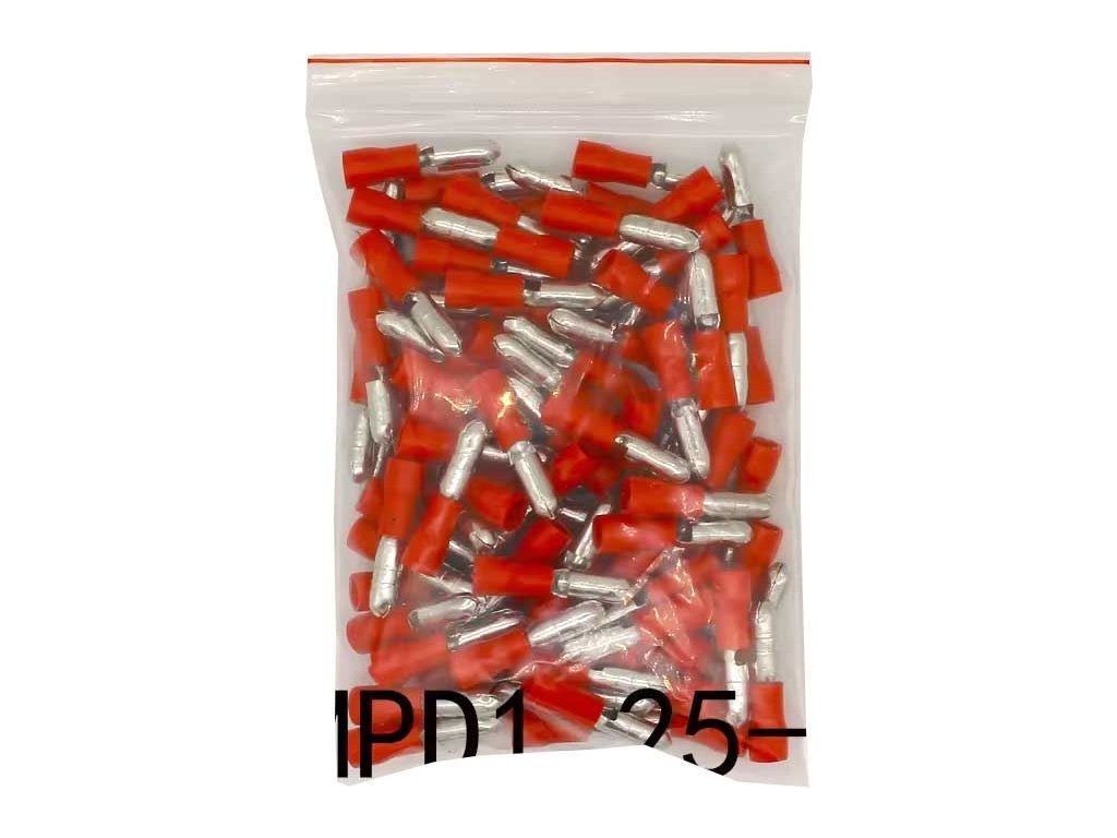 Konektor KOLÍK 4mm červený, kabel 0,5-1,5mm2, balení 100ks