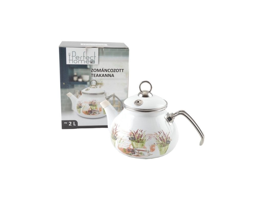 Kvalitní smaltovaná čajová konvice s nerezovou ručkou a doplňky v designu LAVENDER.Tvarovaná rukojeť, odnímatelné víčko s ingrevanou píšťalkou a krytkou na výlevku.