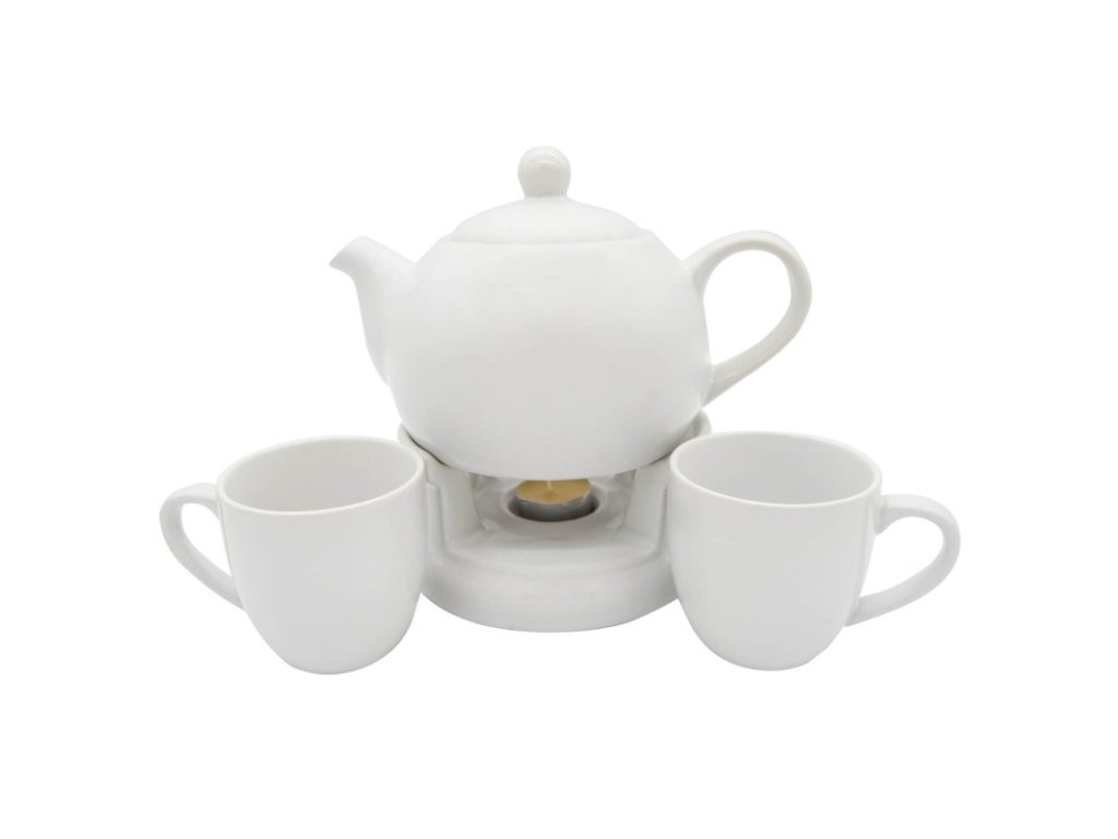Konvice porcelán 1000ml s ohřívačem + 2 hrnky WHITE