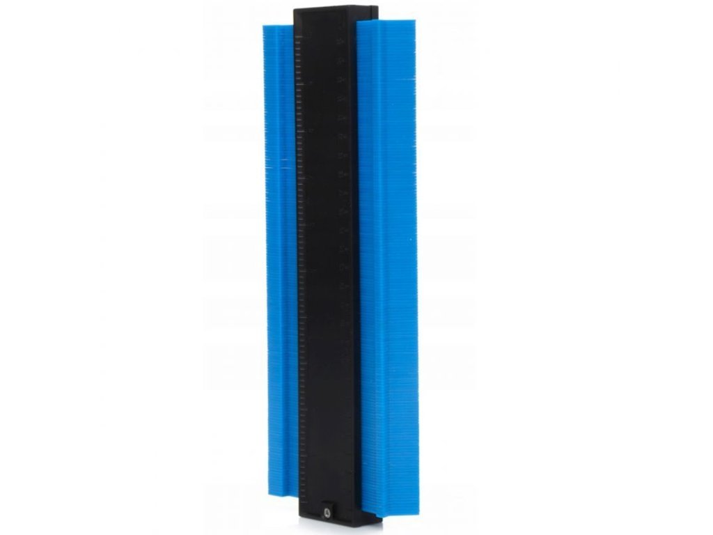Plastová obrysová šablona šíře 250 mm pro přenášení tvarů profilů předmětů. Praktická pomůcka například pro karosáře, nebo při pokládání plovoucích podlah. Přiložením lamel šablony k předmětu břity lamel kopírují obrys, který je možno přenést jinam.