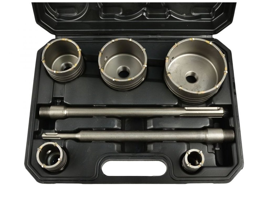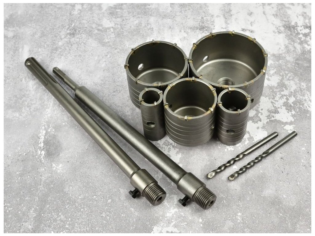 - 5 ks korunek, 2 ks vrtáků, uchycení SDS+ a SDS Max - 9 ks sada