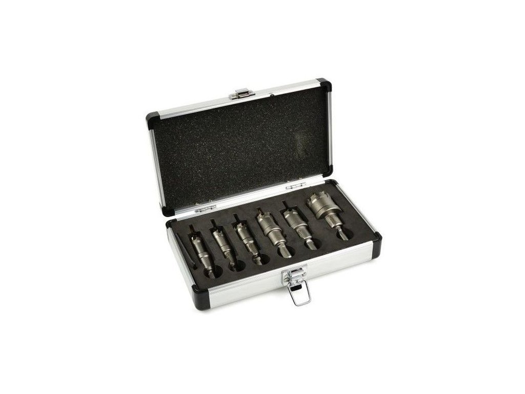Sada obsahuje 6 ks korunkových vrtáků v rozměrech 16 - 35 mm s maximální hloubkou vrtání 25 mm. Pro prodloužení životnosti vrtáků se doporučuje použití chladícího maziva.