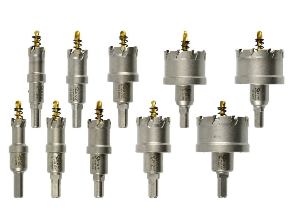 Korunkové vrtáky do kovu TCT, 16 - 53 mm, sada 10 ks GEKO