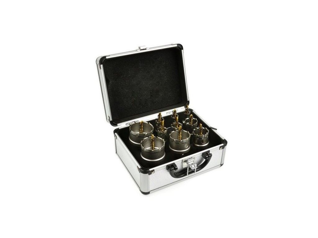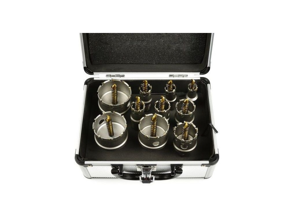 Sada obsahuje 10 ks korunkových vrtáků v rozměrech 16 - 53 mm s maximální hloubkou vrtání 25 mm. Pro prodloužení životnosti vrtáků se doporučuje použití chladícího maziva.