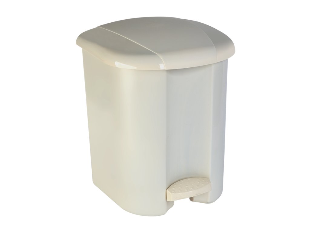 Plastový koš s pedálovým otevíráním víka objemu 17 litrů.Součástí koše je vyjímatelná plastová vložka.