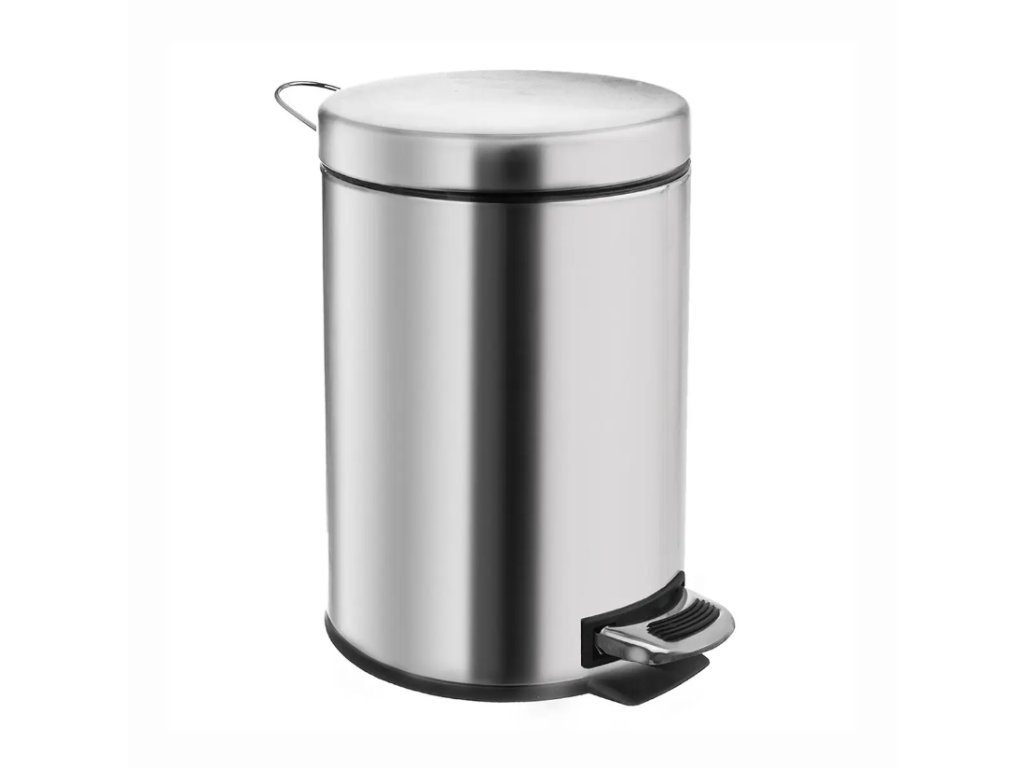 Matný nerezový odpadkový koš s nášlapným pedálem.Objem 3 litry, průměr 17 cm, výška 25.5 cm.