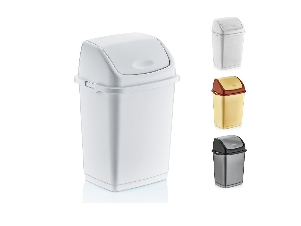 Plastový odpadkový koš s výklopným víkem velikostně vhodný na toalety nebo drobný odpad, zacvakávací víko.Objem 5 litrů, rozměry 18.5 x 15 x 28 cm.