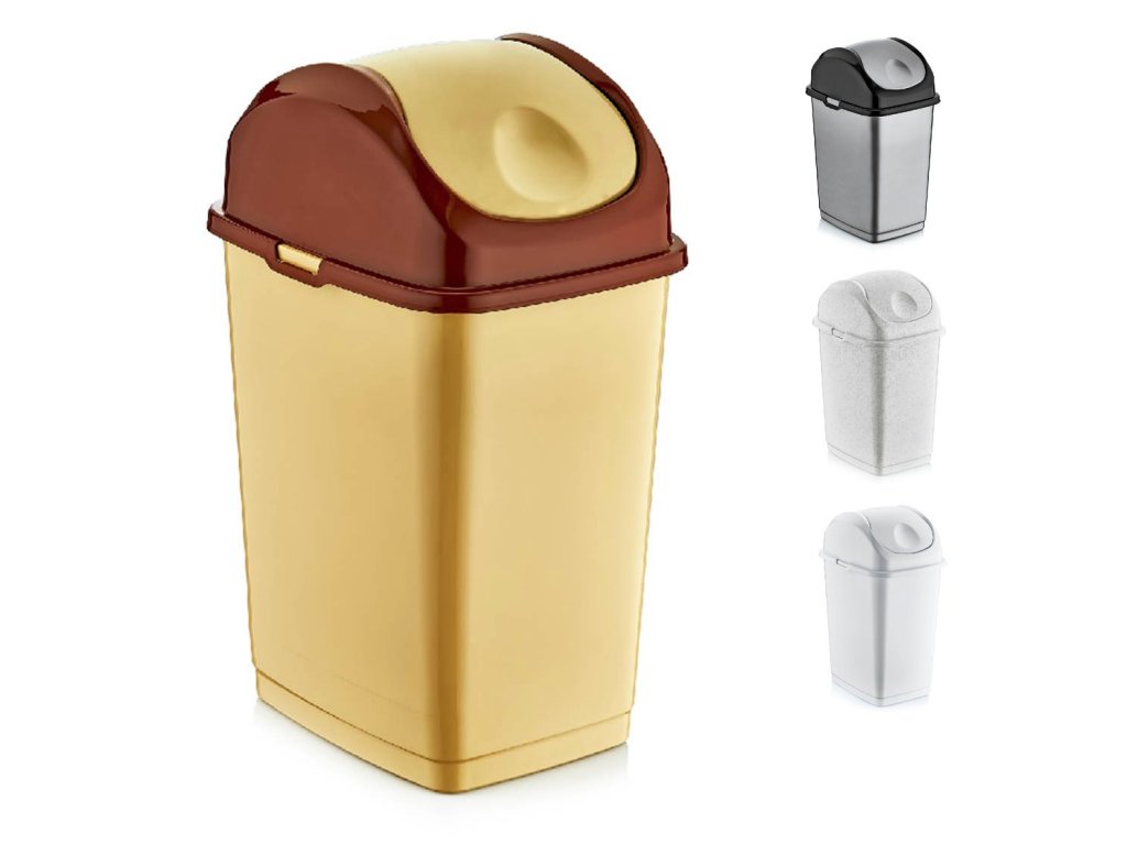 Plastový odpadkový koš s výklopným víkem, zacvakávací víko.Objem 5 litrů, rozměry 15 x 18.5 x 28 cm.