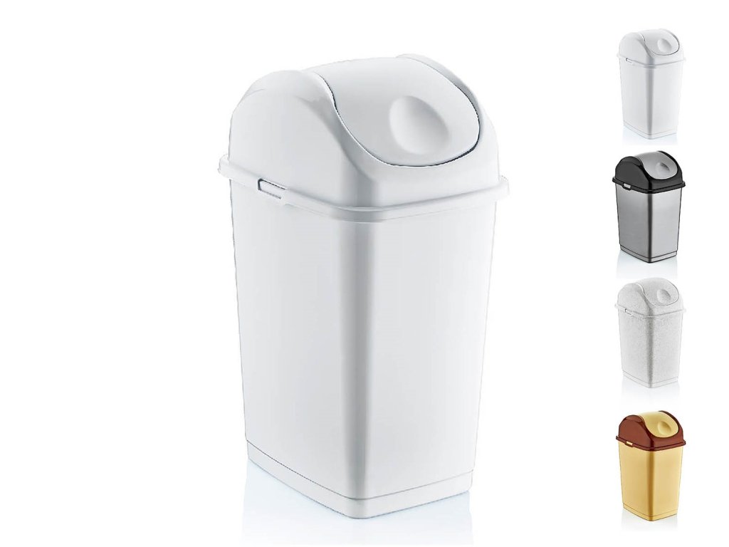 Plastový odpadkový koš.Objem 18 litrů, rozměry 29 x 23.5 x 46 cm.