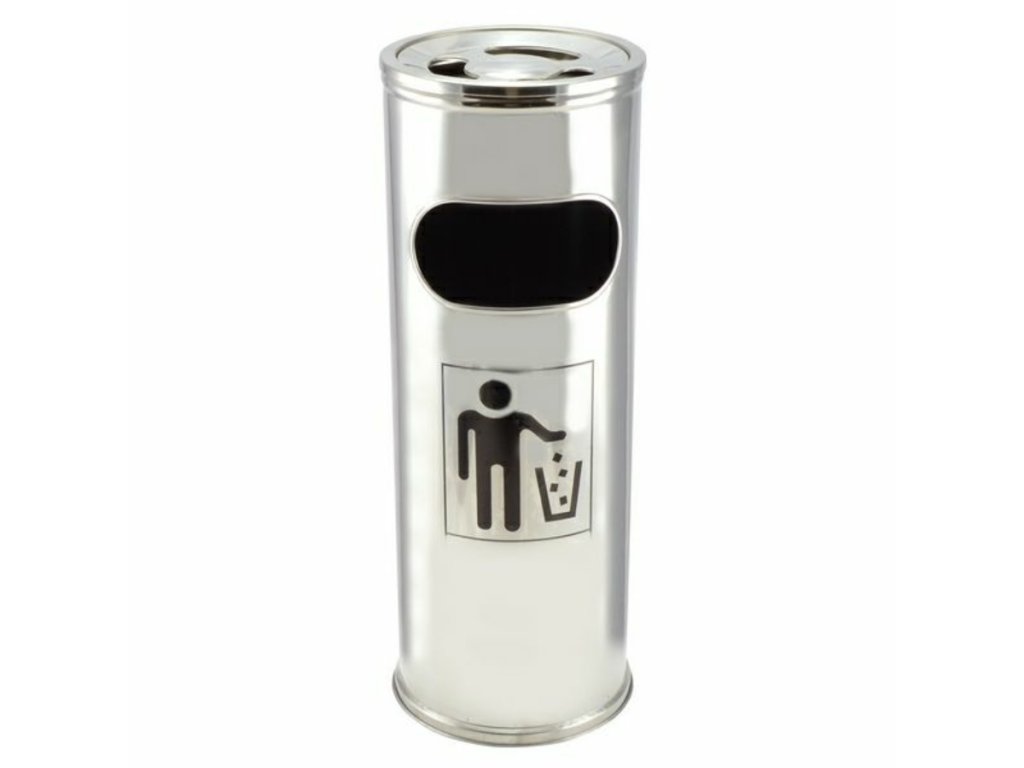 Lesklý nerezový koš na odpad včetně popelníku.Průměr 21 cm a výška 58 cm.