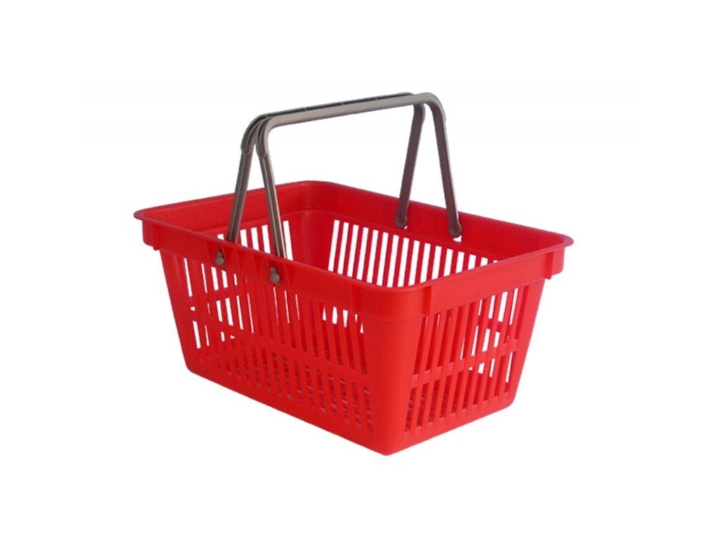 Plastový nákupní koš do samoobsluhy se 2 držadly.Rozměr 44.5 x 30.5 x 20.5 cm, objem 22 litrů.
