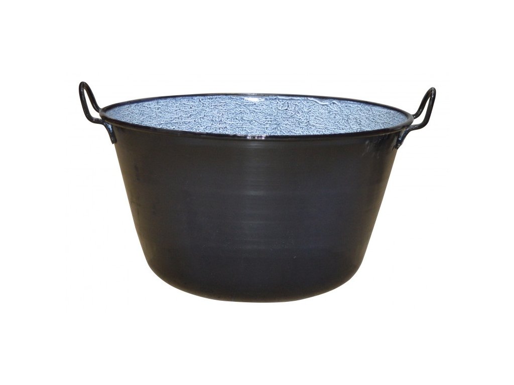 Smaltovaný kotlík objemu 80 litrů s uchy, horní průměr 65 cm (bez uch), výška 40 cm, síla stěny 1.5 mm.Kotel může mít drobně oděrky, které nemají vliv na jeho používání.