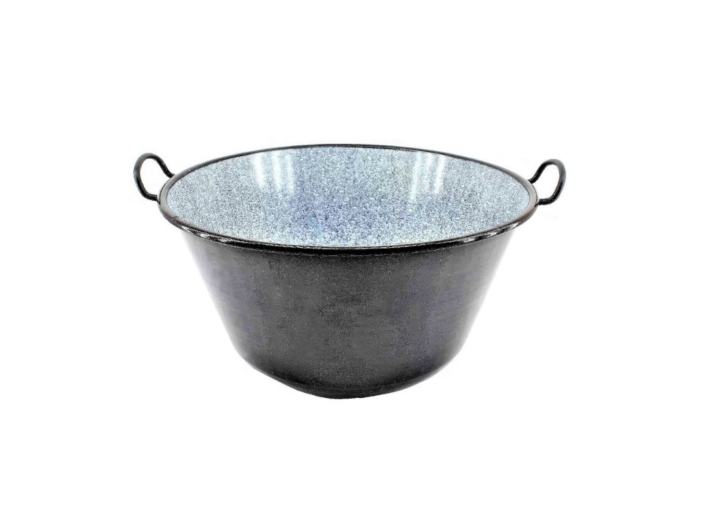 Smaltovaný kotlík objemu 60 litrů s uchy, je určený na kotlinu průměr 58 cm.Horní průměr 59.5 cm, výška 32 cm (rozměry bez rukojetí). Hmotnost 4.7 kg.