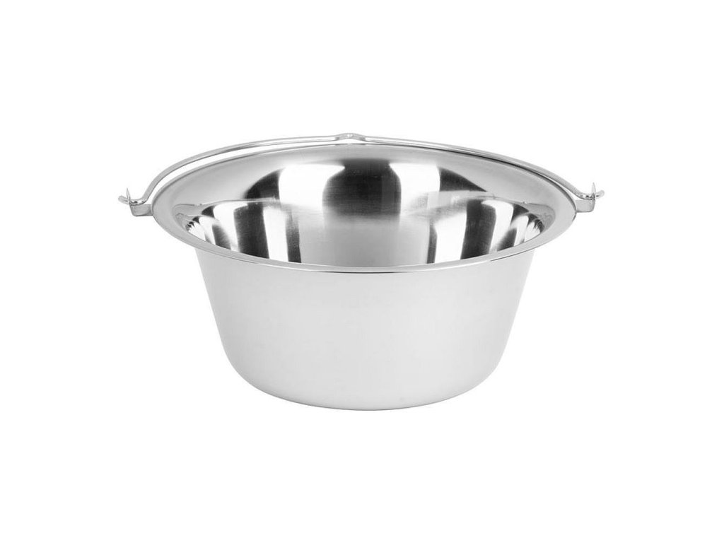 POPIS Nerezový kotlík vhodný pro přípravu jídla při táboření v přírodě, u vody nebo v domácnosti. Průměr: 37 cm Výška: 17 cm Objem: 10 litrů