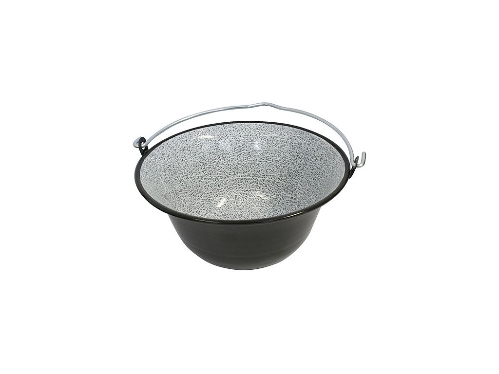 Kovový smaltovaný kotlík má velkou výhřevnost a je zvlášť vhodný na kempování nebo přípravu pokrmů na otevřenémn ohni.Vnější průměr kotlíku 32.5 cm, výška 15 cm.