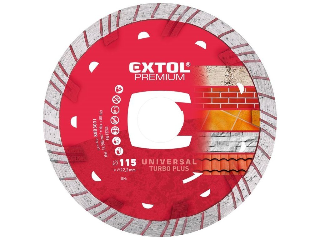 Kotouč diamantový řezný turbo plus, 115x22,2mm, EXTOL PREMIUM