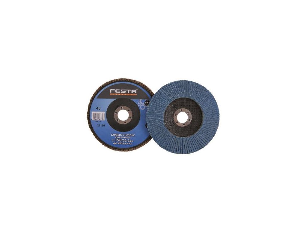 Kotouč lamelový brusný na kov a nerez Ø 150 x 22,23 mm, zrnitost 100, FESTA