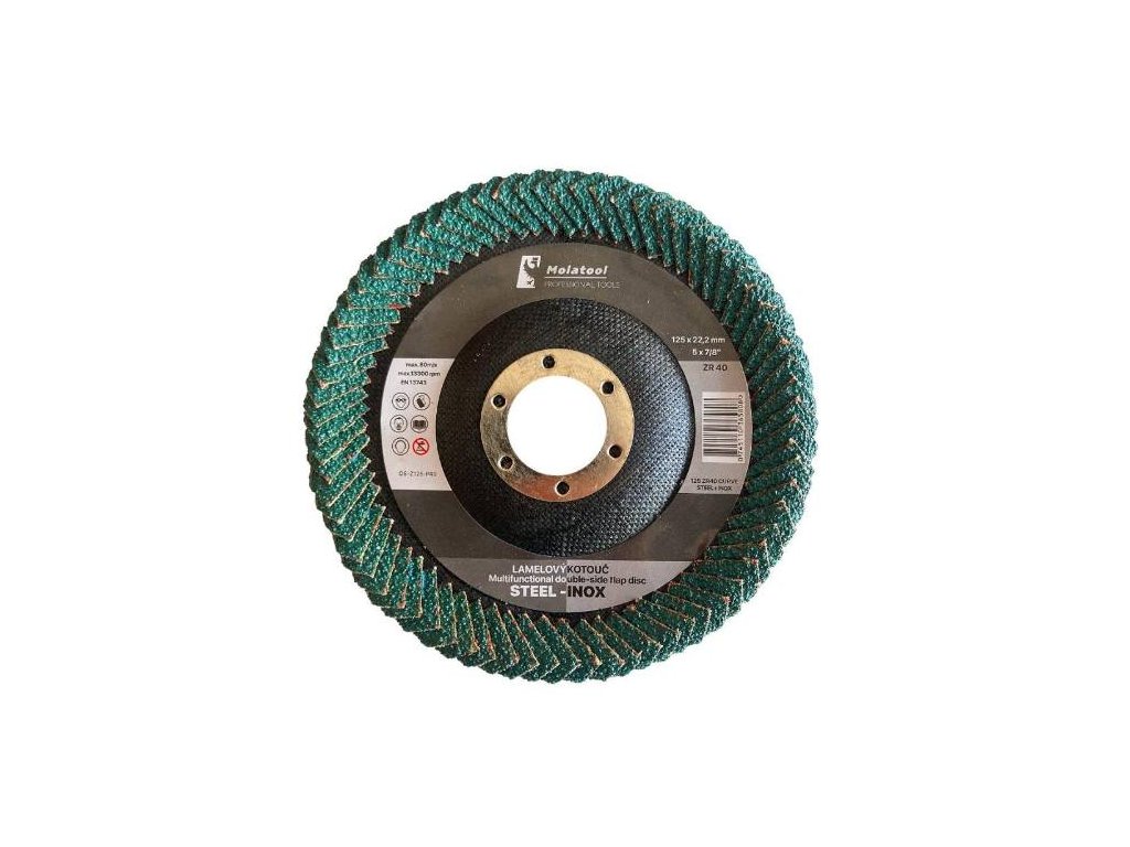 - zajišťuje vysoký výkon a životnost z důvodu oboustranné vějířové skladbě s vysoce výkonných pláten s brusným materiálem