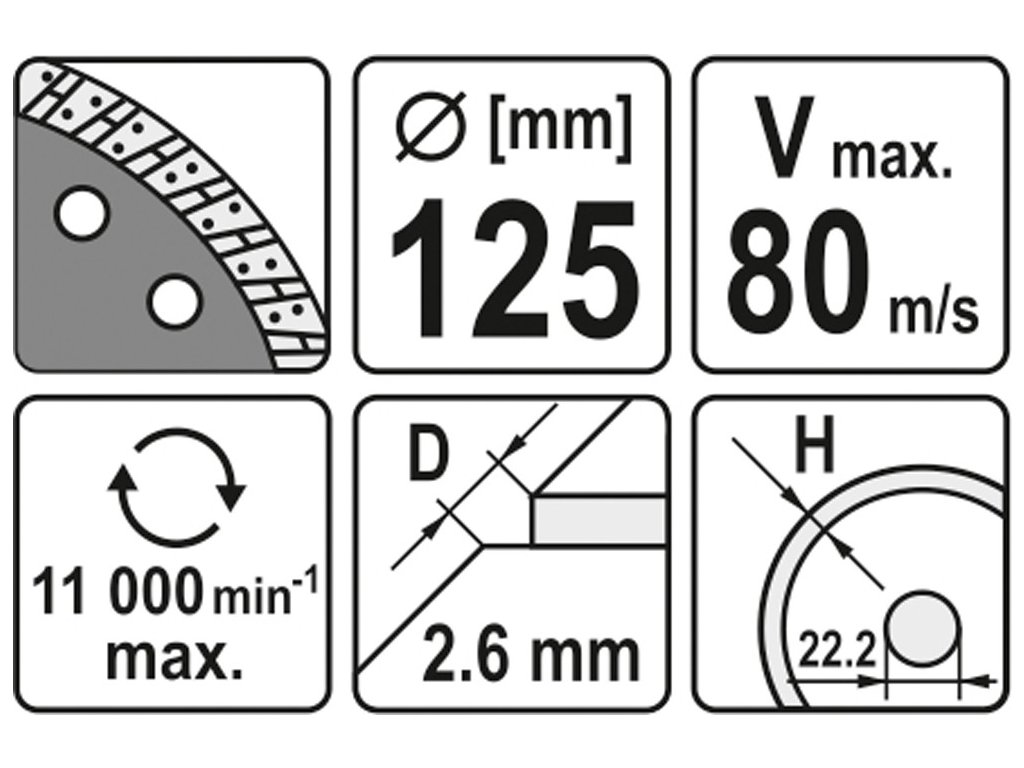 Kotouč řezný diamantový 125 x 22,2 x 2,6 mm turbo
