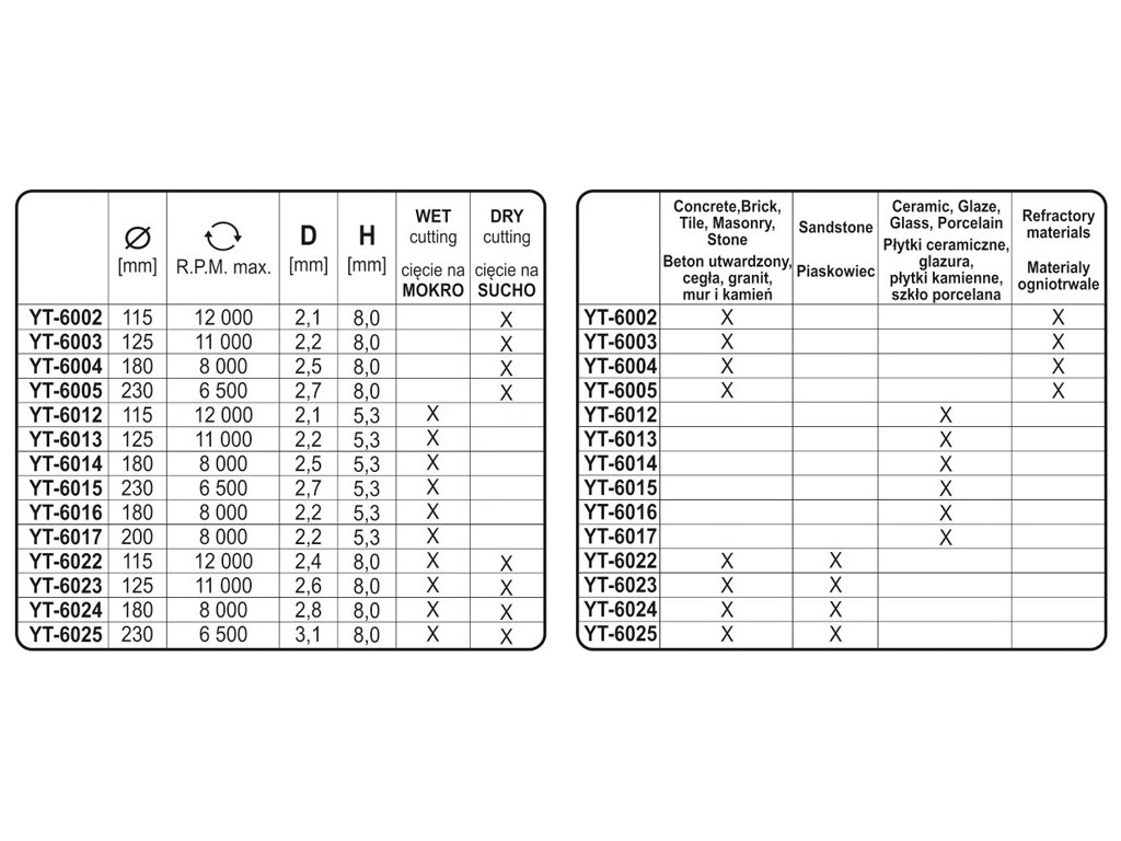 Kotouč diamantový pro suché i mokré řezání s použitím na beton, dlažbu, zdivo, kámen a pískovec.