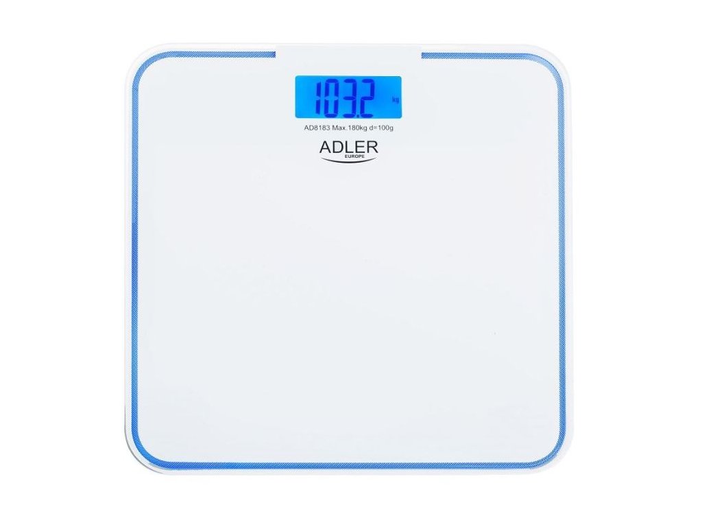 Koupelnová váha - 180kg - s modrým podsvícením okrajů 8183 ADLER Kapacita: 180 kg / 396 lb / 28,3 stDělení: 100g