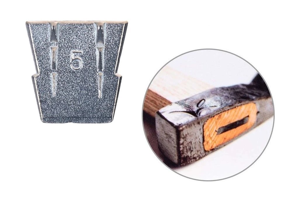 Kovový klínek G72218 pro zajištění dřevěných násad nářadí a je vyroben z kvalitního odlitku a vybaven zarážkami, které zajišťují bezpečné a pevné osazení násady. Klínek velikosti 5 slouží k pevnému upevnění topůrka nebo rukojeti k nářadí jako jsou sekery, kladiva, palice, krumpáče nebo motyky. Zabraňuje uvolnění a zajišťuje bezpečné a dlouhodobé uchycení násady.