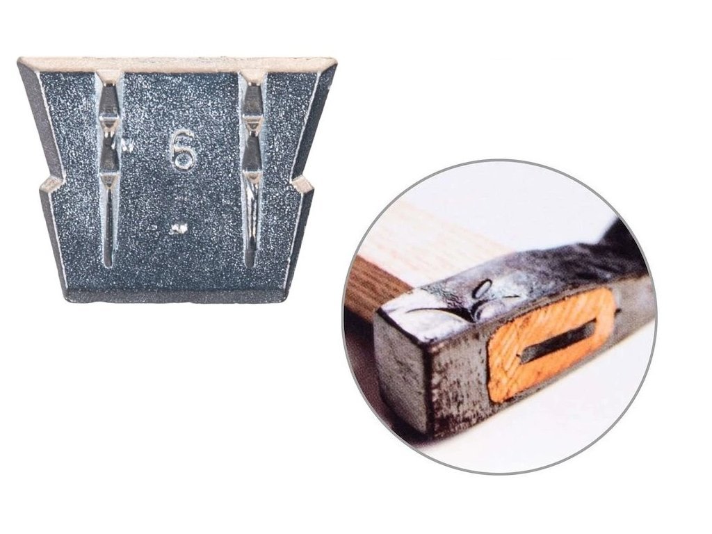 Kovový klínekG72219 pro zajištění dřevěných násad nářadí a je vyroben z kvalitního odlitku a vybaven zarážkami, které zajišťují bezpečné a pevné osazení násady. Klínek velikosti 6 slouží k pevnému upevnění topůrka nebo rukojeti k nářadí jako jsou sekery, kladiva, palice, krumpáče nebo motyky. Zabraňuje uvolnění a zajišťuje bezpečné a dlouhodobé uchycení násady.