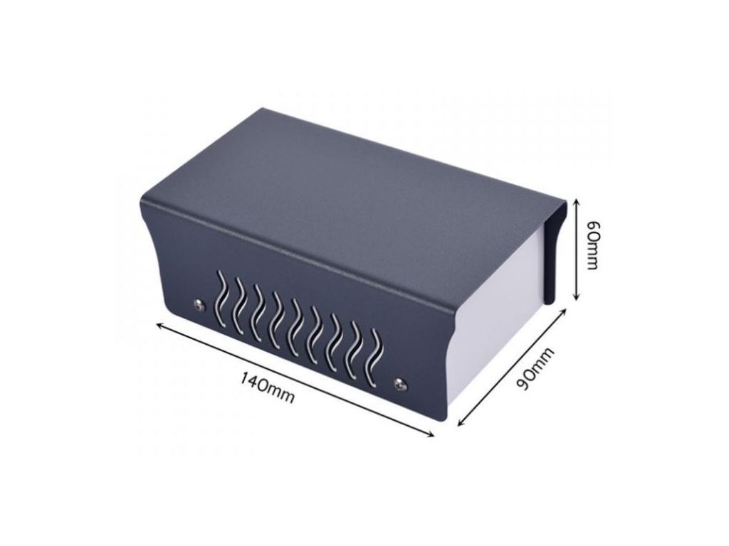 Krabička plechová dvoudílná, 90x140x60mm, šedá/bílá Ocelový lakovaný plech s bočními větracími otvory a gumovými nožkami. Hmotnost 509gDoplňkové parametry