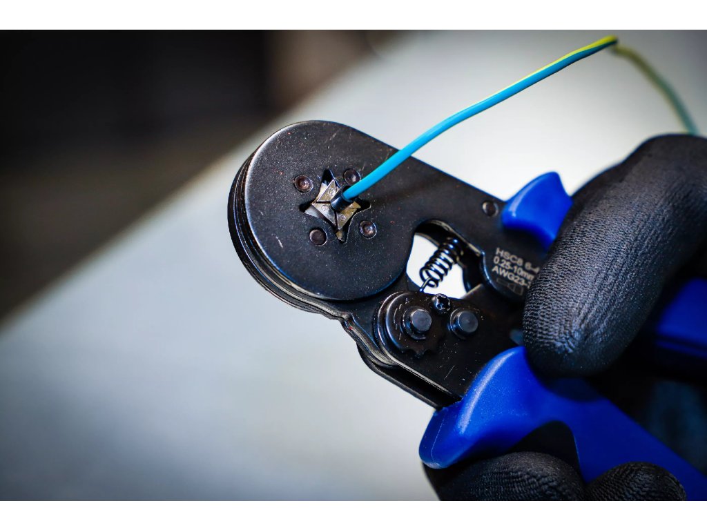Krimpovací kleště v sadě s přesným čtvercovým upínacím profilem pro kabelové svazky o rozměru 0,25 - 10 mm2.
