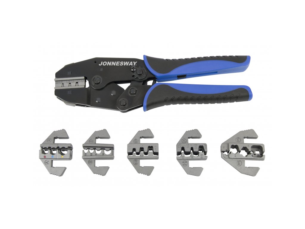 Krimpovací kleště konektorové - sada s výměnnými čelistmi, 7 ks - JONNESWAY AR030058