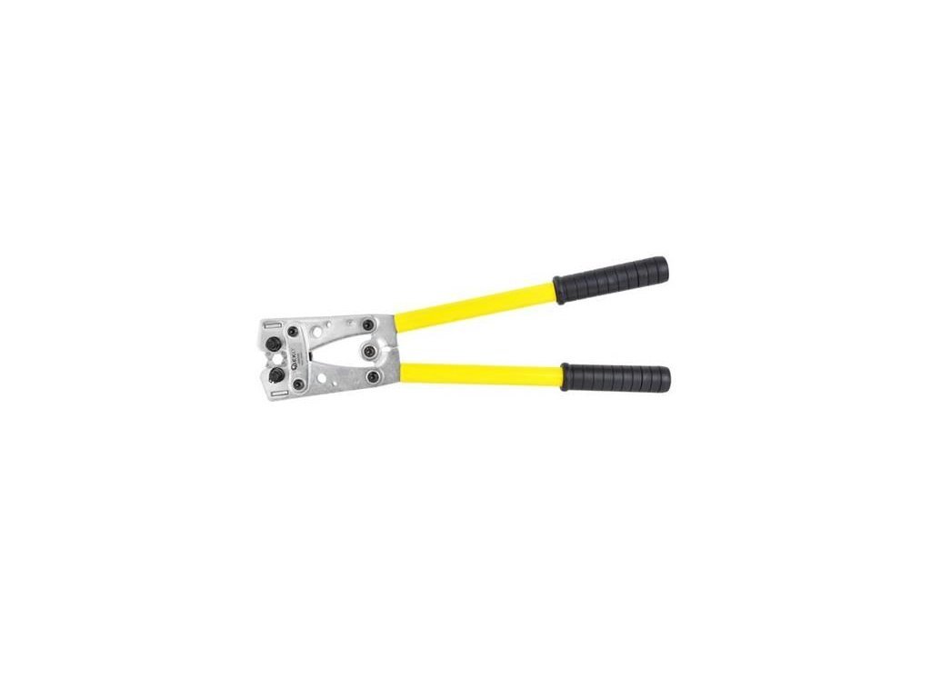 Krimpovací nástroj se používá pro krimpování konců kabelů z Cu a Al. Šestihranná HEX matrice z tvrzené oceli SCM-40. Optimální poměr páky umožňuje upnutí s nízkou silou. Ergonomická rukojeť zaručuje bezpečné uchopení nástroje. Vhodný pouze pro nekomerční využití.