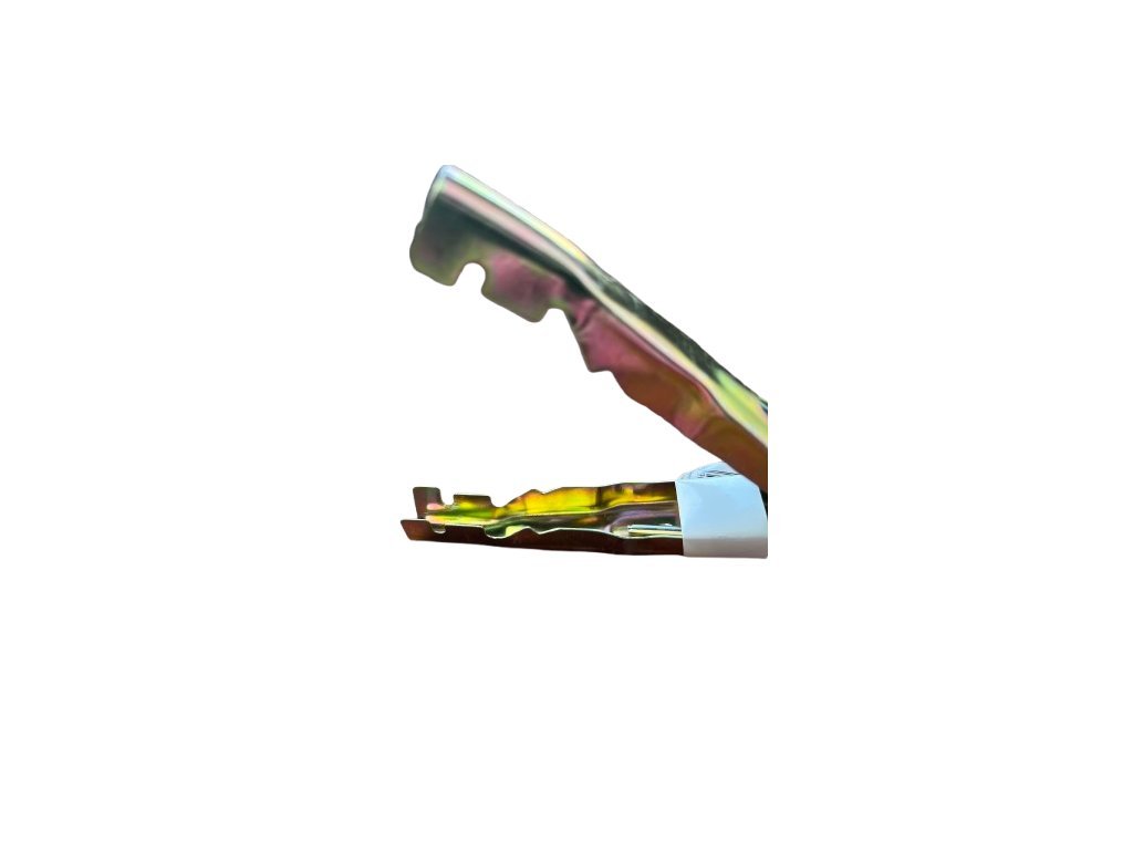 Pevná krokosvorka G03592A pro maximálním proud 300 A. Navržena pro startovací kabely, poskytuje bezpečné spojení při startování vozidel. Izolovaná červená rukojeť označuje kladný (+) pól, což umožňuje rychlou a bezpečnou identifikaci polarity. S rozměry 155 x 110 mm je svorka dostatečně velká, aby zajistila pevné uchycení vývodů baterie a zároveň zůstala pohodlná při používání. Pevná konstrukce zaručuje odolnost a spolehlivost i v náročných podmínkách, jako jsou nízké teploty nebo intenzivní používání.