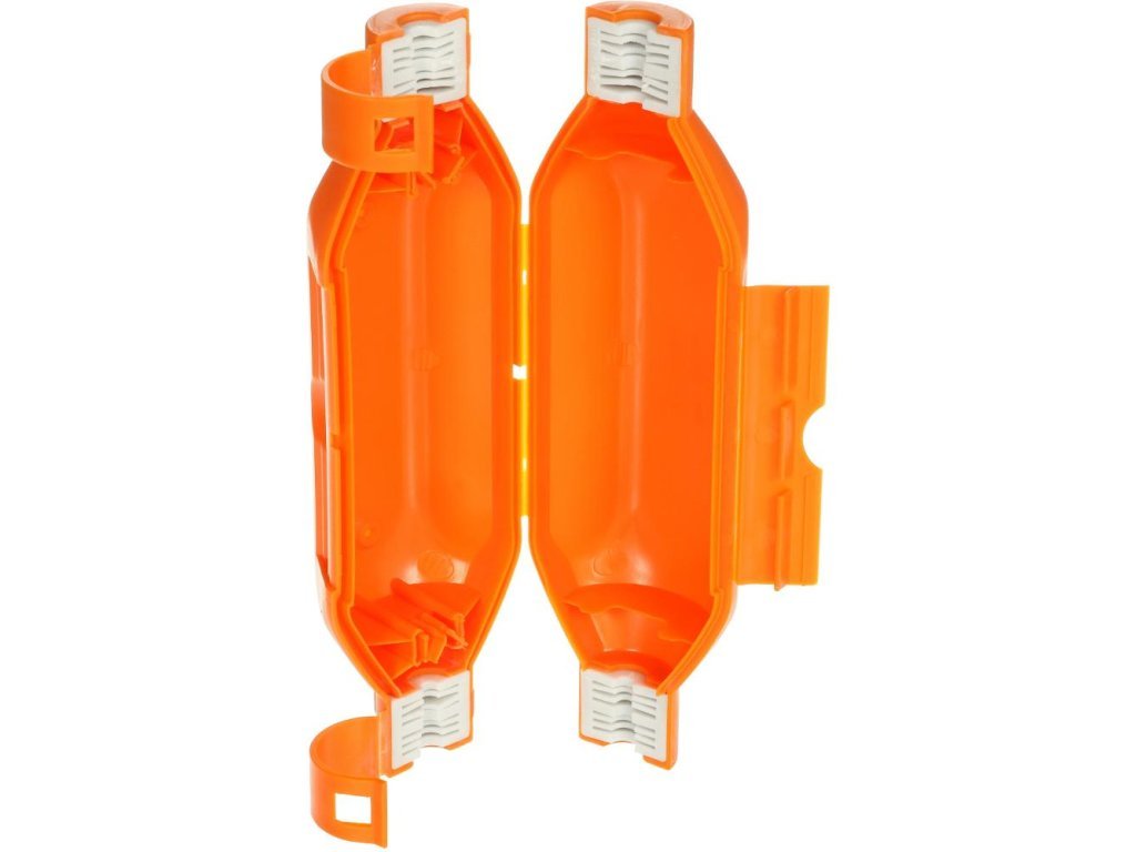 Venkovní kryt kabelových spojů RPA 103 se stupněm krytí IP44 proti stříkající vodě a je koncipován jako zacvakávací pouzdro. Stačí jen vložit spojku kabelů do pouzdra a po zavření používat ve venkovních prostorách.V případě potřeby lze pouzdro i zavěsit.