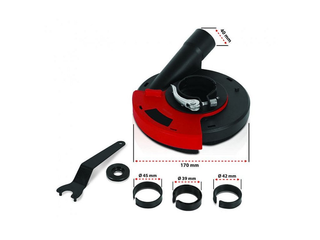 Odsávací ochranný kryt pro úhlovou brusku s kartáčovým věncem 115 - 125 mm a frézování zajistí odvod prachu během práce.