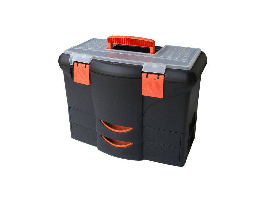 Bedna na přenos a skladování ručního nářadí. Hlavní prostor je dostatečně objemný i na pojmutí větších kusů, do 2 zásuvek lze uložit ploché předměty. Ve víku je odkládací prostor na drobnosti (šroubky, matky, bity apod.).