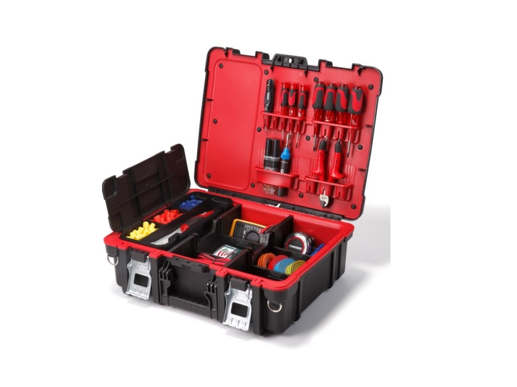 Kufr je vyroben z plastové pryskyřice a má robustní exteriér a interiér s polstrováním – maximální ochrana pro vaše nářadí!
