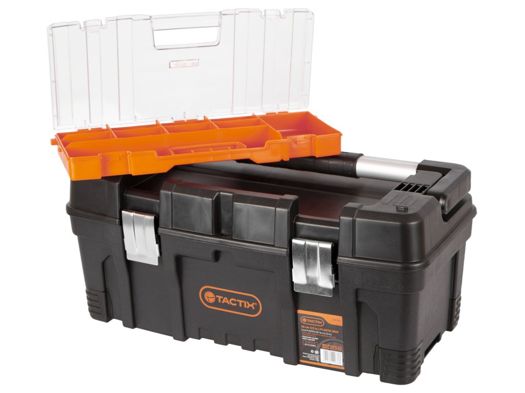 Plastový kufr s odnímatelným organizérem ve vrchní části.