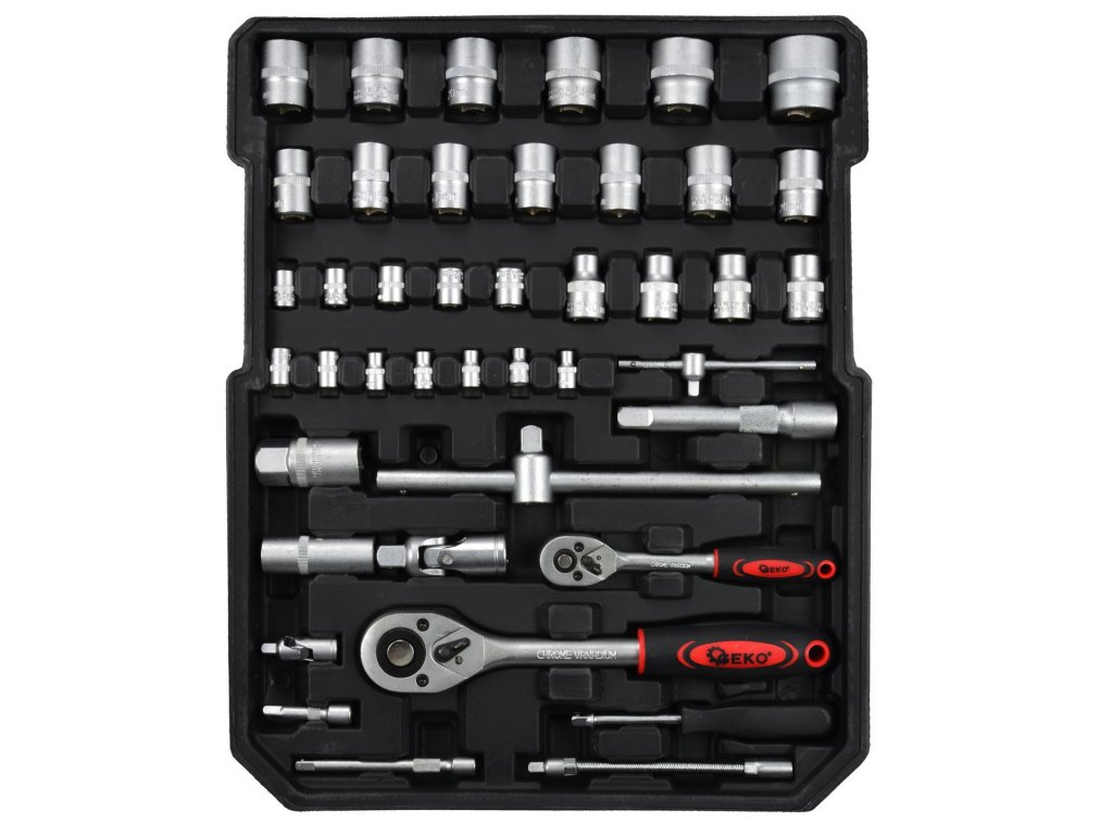 187dílná sada nářadí v pojízdném hliníkovém kufru – GEKO G10855