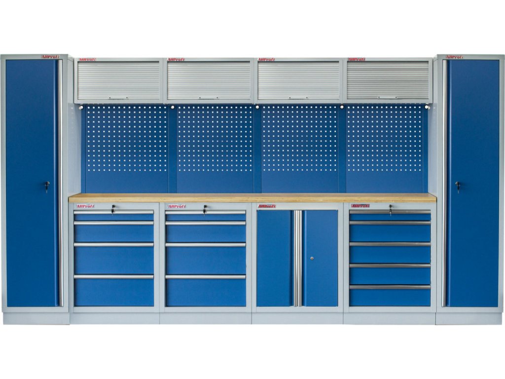 Sestava nábytku v sobě skrývá dostatečné množství úložného prostoru pro vaše nářadí, autotechniku i dílenské vybavení. V kombinaci s bytelnou pracovní deskou získáte multifunkční stěnu, se kterou vám půjde práce od ruky ve všech směrech.