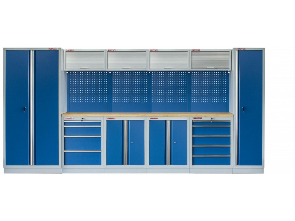 Sestava nábytku v sobě skrývá dostatečné množství úložného prostoru pro vaše nářadí, autotechniku i dílenské vybavení. V kombinaci s bytelnou pracovní deskou získáte multifunkční stěnu, se kterou vám půjde práce od ruky ve všech směrech.