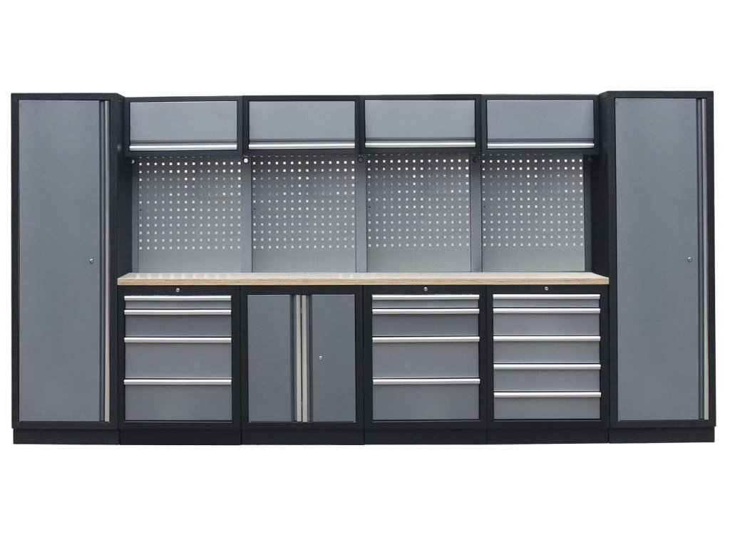 Sestava nábytku v sobě skrývá dostatečné množství úložného prostoru pro vaše nářadí, autotechniku i dílenské vybavení. V kombinaci s bytelnou pracovní deskou získáte multifunkční stěnu, se kterou vám půjde práce od ruky ve všech směrech.