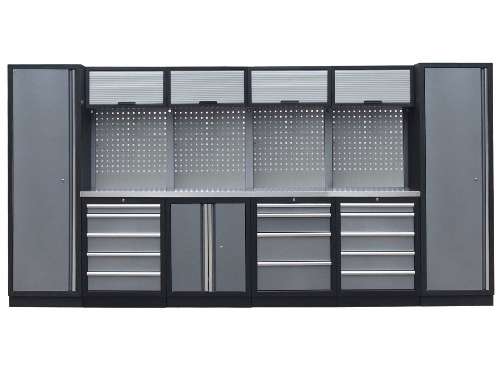 Sestava nábytku v sobě skrývá dostatečné množství úložného prostoru pro vaše nářadí, autotechniku i dílenské vybavení. V kombinaci s bytelnou pracovní deskou získáte multifunkční stěnu, se kterou vám půjde práce od ruky ve všech směrech.